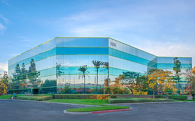 Office is located on the first floor next to the courtyard between the 2 large glass buildings.